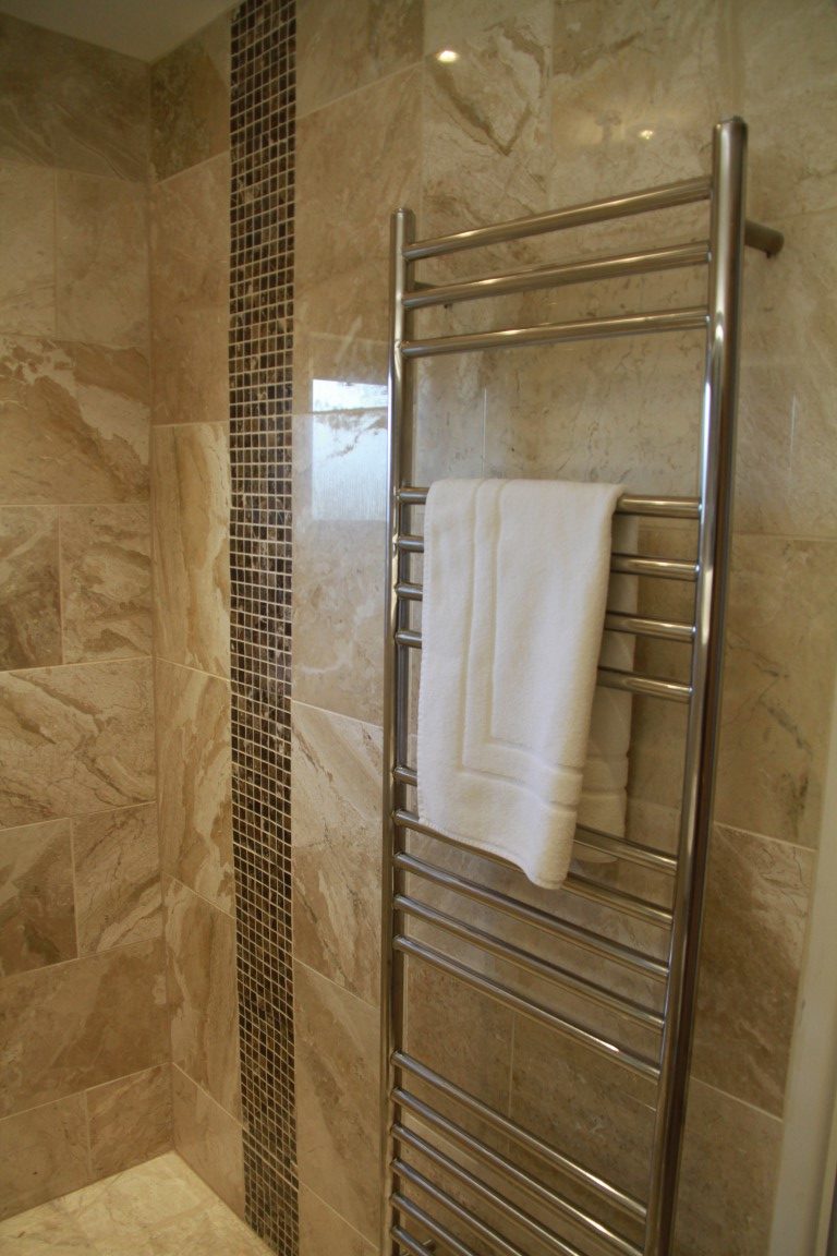 The bathroom can be found on the first floor, and comprises a large walk-in shower with a ceiling mounted rainfall shower head plus a multi mode fixed wall shower head and a hand held shower wand.